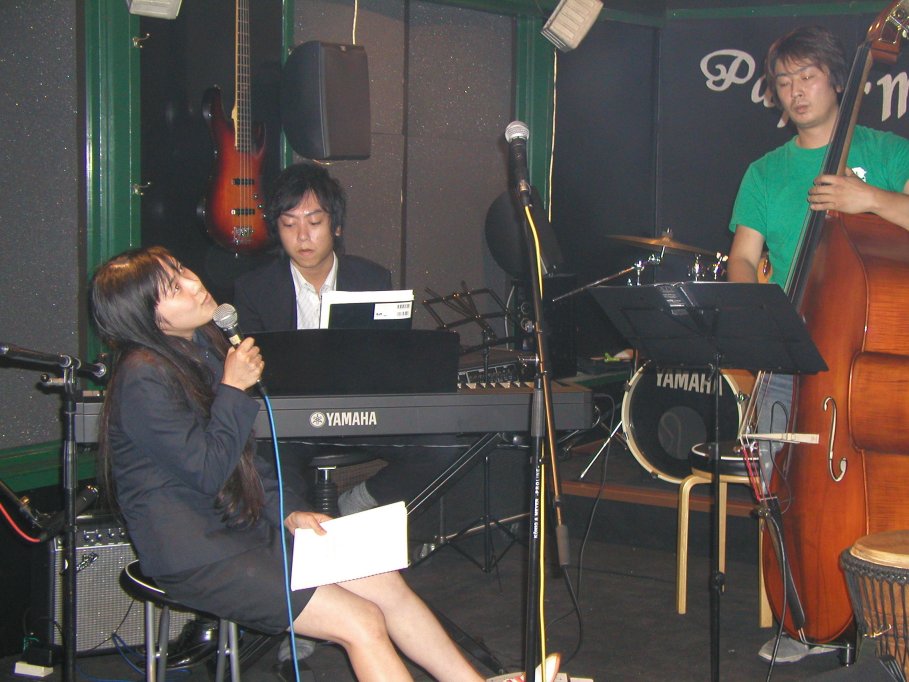 仲野さんのライヴはFANの熱い視線で熱気にあふれてます。ますます磨きのかかった歌声に酔いしれてくださいね。(ジャズ、ポップス) 篠原和宏(pf)飯田和治(ts)安斎陽一(dr)黒沢純一郎(bs) |