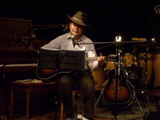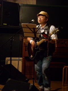 ブルースをやりそでやらない、いんちきブルースマン。今日もジャラーンと弾き語る。