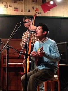 ウクレレを弾きながら自分でこさえた歌を歌っています。 |