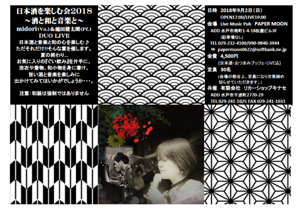旨い酒と音楽を楽しみに出かけてみてはいかがでしょう♪